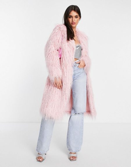 Faux Longline Coat in Light Pink